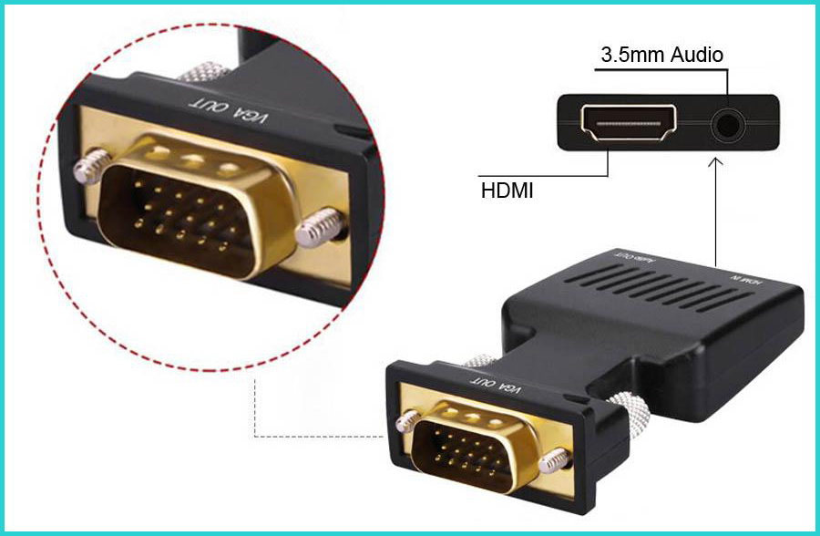 Возникают ситуации, когда приставка не имеет морально устаревших разъёмов VGA и DVI. В этом случае требуется применить специальный видео конвертер. Его главное предназначение — возможность соединения приборов посредством двух кабелей разного формата. На изображении представлен самый распространённый видео конвертер VGA-HDMI.
