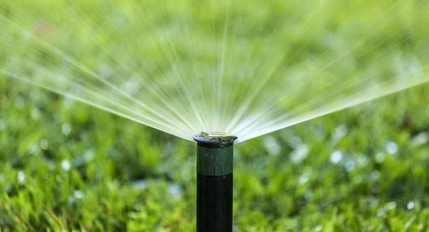 Система дождевания может быть наземного и подземного типа и состоять из нескольких разбрызгивателей равномерно увлажняющих площадь.