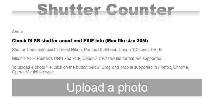 Покупая б/у фотокамеру, не всегда получится выполнить проверку с помощью компьютерной программы. Для таких ситуаций можно использовать один из специальных онлайн сервисов — например, camerashuttercount.com и eoscount.com. Все, что нужно для просмотра счетчиков — загрузить фотографию на телефон и перейти на нужный сайт.