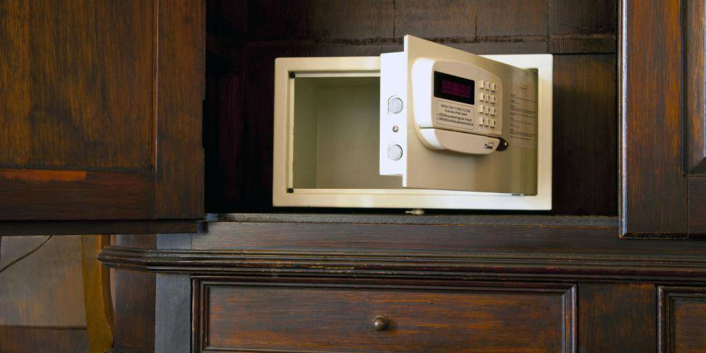 Место расположения. Сейфы в номерах могут быть прикручены болтами к полке гардероба или крепиться непосредственно к стене. Иногда хранилища прячутся за дверцей прикроватной тумбочки или в выдвижном ящике