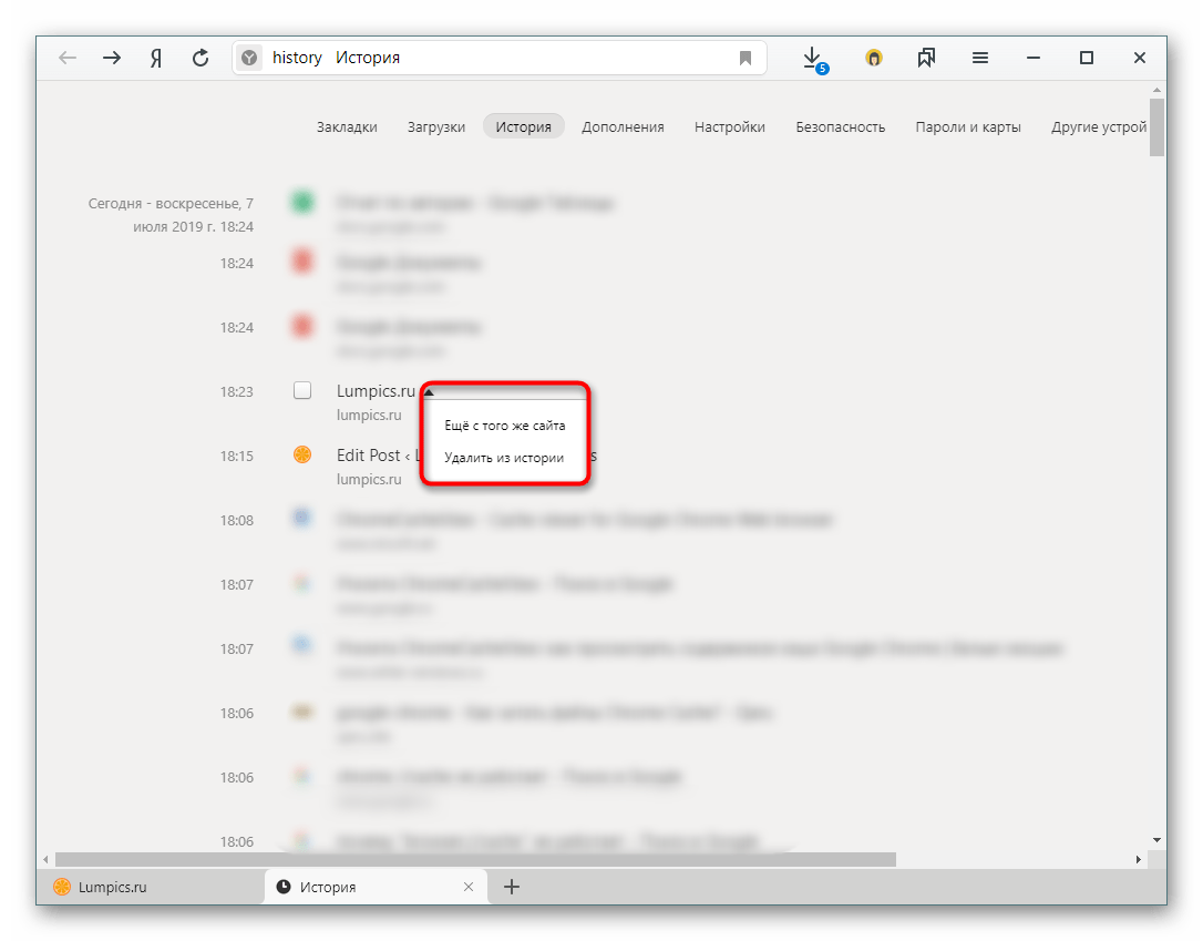 Так называемое выборочное удаление данных из истории будет полезным для оперативного стирания определенных страниц, посещенных ранее. Сделать это можно следующим образом: