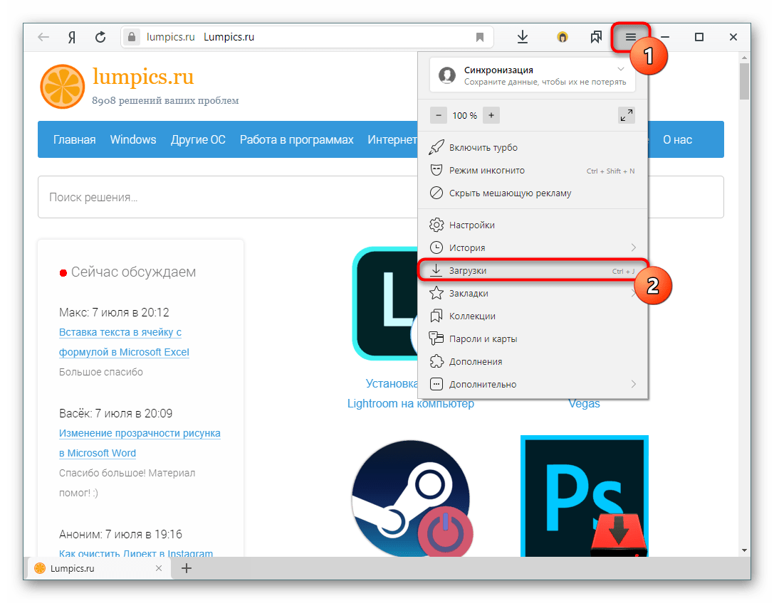 Щелкните Меню> Загрузки или одновременно нажмите Ctrl + J.