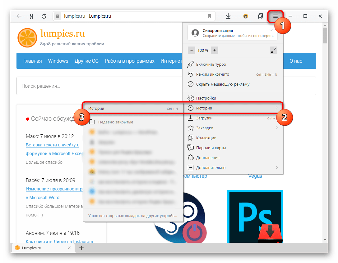 Далее вы можете перейти в разделы «Недавние вкладки» (рекомендую начать именно с него) и «История» .