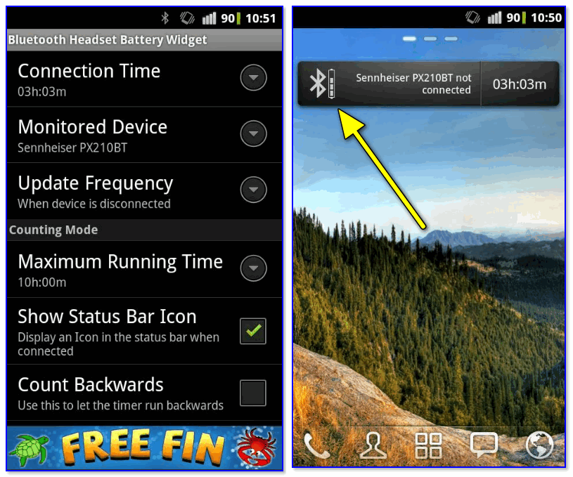 Пример работы Bluetooth Headset Battery (скрины разработчика)