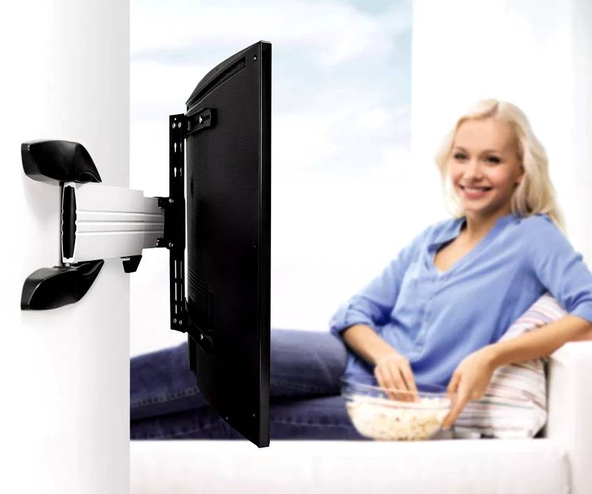 Этот крепеж является уникальным, ведь с его помощью можно отодвигать, поворачивать или наклонять телевизор так как вам удобно. Этот кронштейн является довольно дорогим, но он стоит этого. Да, он имеет ограничение по размерам и массе вашего телевизора, это можно посмотреть в документации определенной модели кронштейна, но мы уверены, что можно подобрать хороший и довольно производительный кронштейн по недорогой цене.