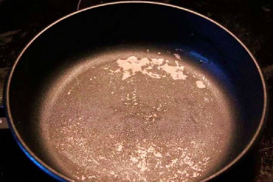 - Причиной пригорания пищи может быть не только низкое качество кухонной посуды. Если использовать нерафинированное масло, которое не предназначено жарки, то под воздействием высоких температур оно начнет пениться и пригорать. Если нет возможности заменить его на рафинированное, в сковороду рекомендуется добавить щепотку соли. Она нейтрализует процесс образования пены и пища перестанет пригорать.
