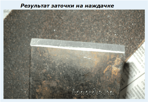 На мелком абразиве лезвие доводится с периодическим смачиванием в воде, важно не допустить перегрева металла. Окончательная доводка делается на точильном камне высокой зернистости