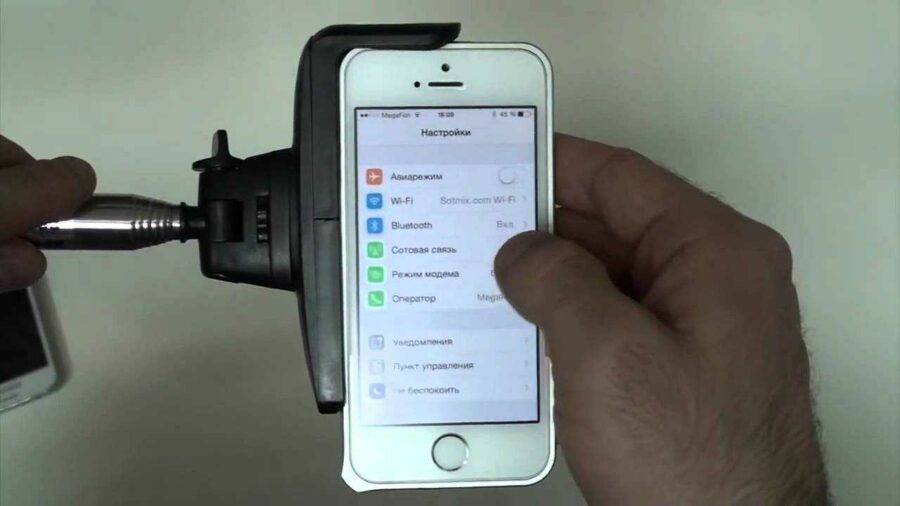 - Зафиксировать Айфон в держателе;