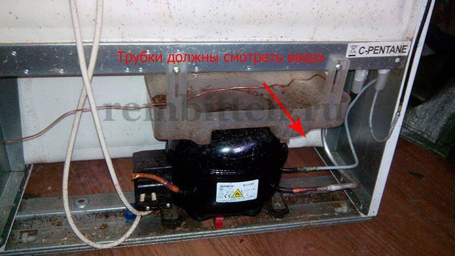 У некоторых моделей холодильников трубки расположены с одной стороны от компрессора – тогда все еще проще. Располагать агрегат при перевозке следует так, чтобы обе трубки были направлены вверх.