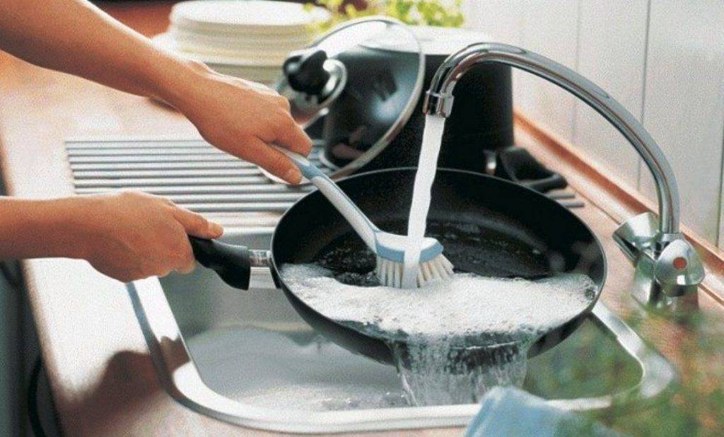 - Мойте посуду сразу после приготовления пищи, чтобы ее остатки не засыхали. Так вам не придется прибегать к помощи абразивных средств, которые разрушают защитный слой.