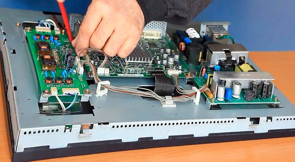 Далее следуем чётко по инструкции, коих много в интернете. Заранее узнайте модель монитора. Так как с виду одинаковые экраны могут отличаться внутри. Будьте осторожны: ремонт экрана, особенно жидкокристаллического, требует аккуратности. Один удар и матрицу придётся менять.
