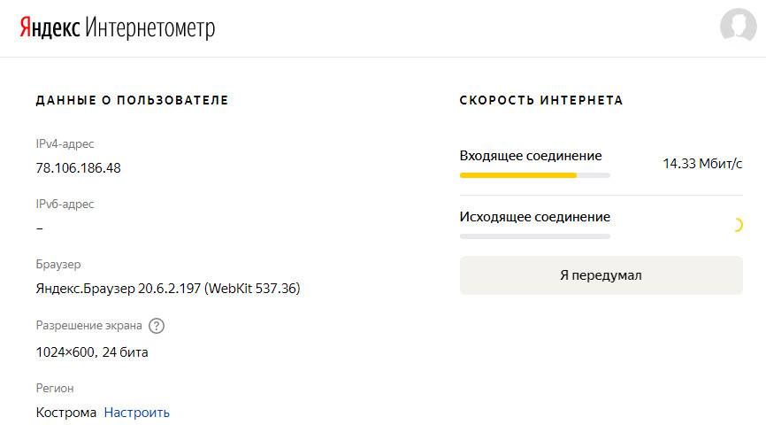 Следующий сайт Яндекс интернетометр поможет подтвердить измерения.
