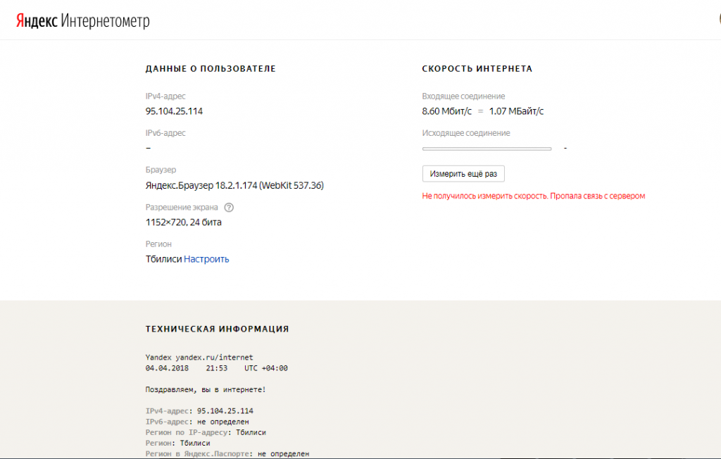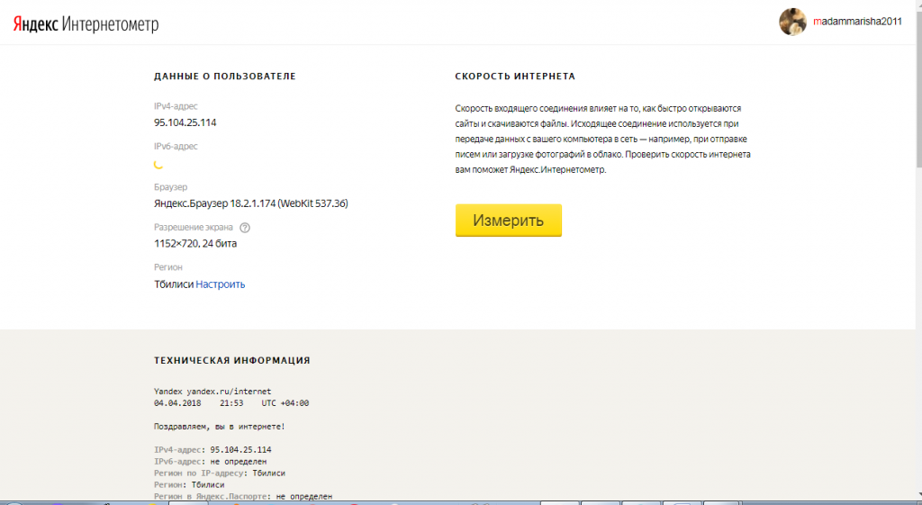 Сервис Яндекс. Интернетометр позволяет получить всю техническую информацию о ПК