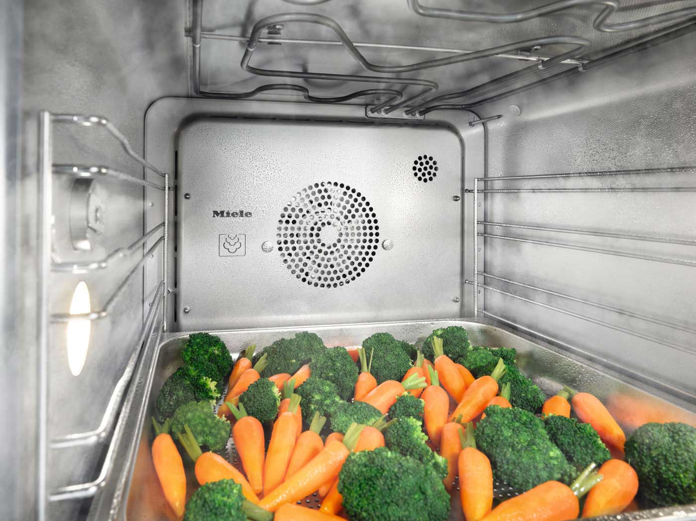 У пароварок Miele парогенератор находится вне рабочей камеры. Благодаря технологии Dual Steam он равномерно распределяется внутри и вытесняет кислород. Так продукты готовятся быстрее и приобретают аппетитный вид. В наших пароварках с покрытием из нержавеющей стали есть три уровня для размещения контейнеров. На каждой из них может уместиться как две маленьких, так и одна большая емкость. Вкусы и запахи не смешиваются. Скорость приготовления не зависит от загруженности камеры. Даже если все уровни заняты, блюда будут готовы вовремя.