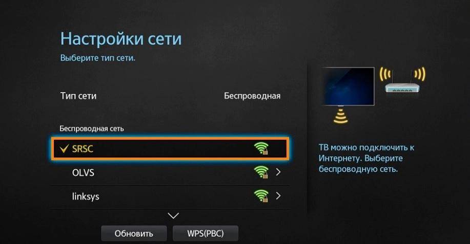 При первом запуске телевизор с поддержкой технологии предлагает пользователю сразу же подключиться к одной из имеющихся сетей вайфай. Для этого необходимо выбрать название сети и ввести пароль. Только после подключения к беспроводному интернету телевизор сможет обновить операционную систему и предоставить доступ к полному спектру своих функций.