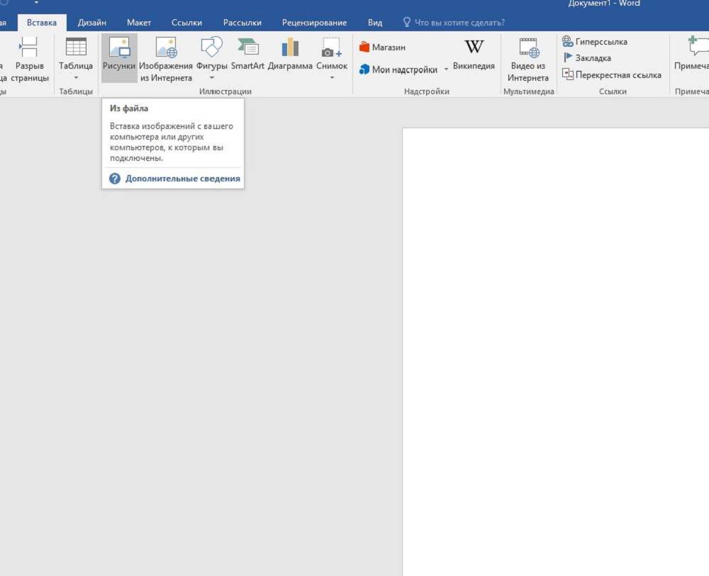 Для размещения картинки, вы можете её просто перетащить либо через панель инструментов «Вставка» — «Рисунок».