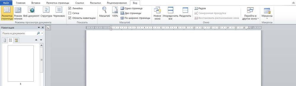 1. Откроем Word, во вкладке Вид выберем ориентацию страницы Разметка страницы.