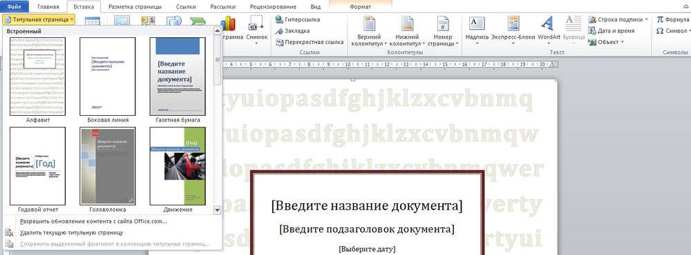 Таким же образом добавляется и удаляется титульный лист в начало документа (курсив может быть установлен даже в самом конце).