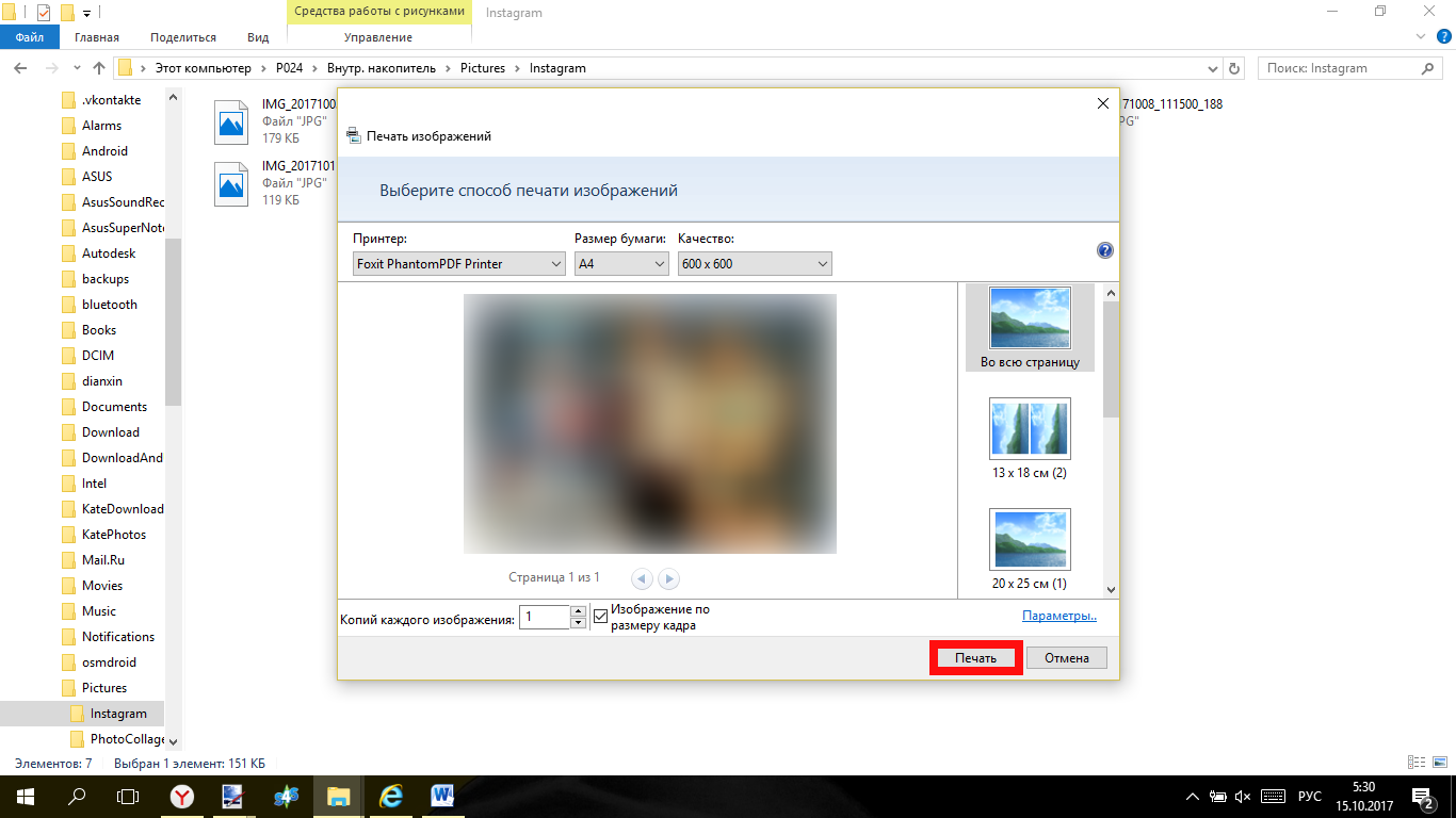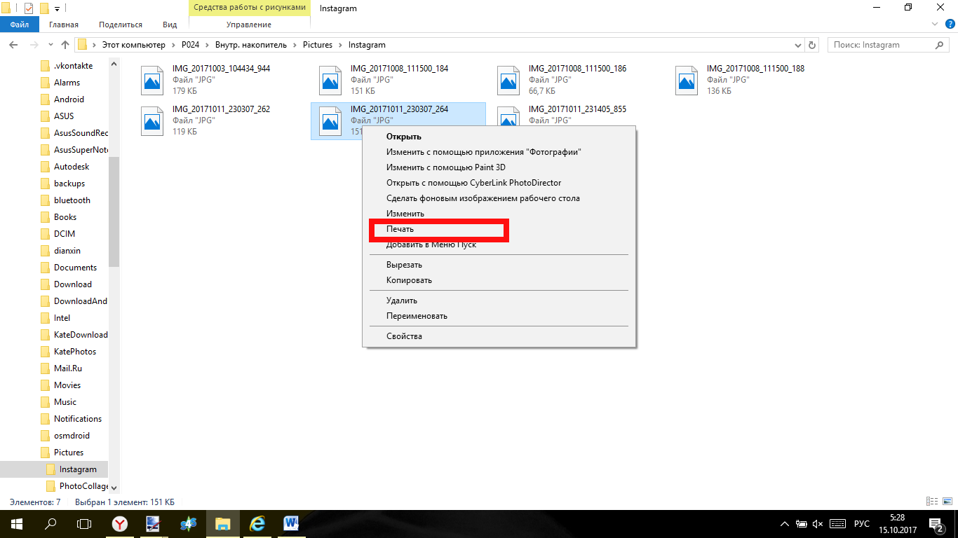 Выберите фото, которое будете печатать, кликните по нему правой клавишей мыши один раз