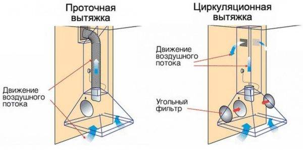 Среди широкого ассортимента, представленного в специализированных магазинах, можно выделить два основных типа вытяжек: проточный и циркуляционный.