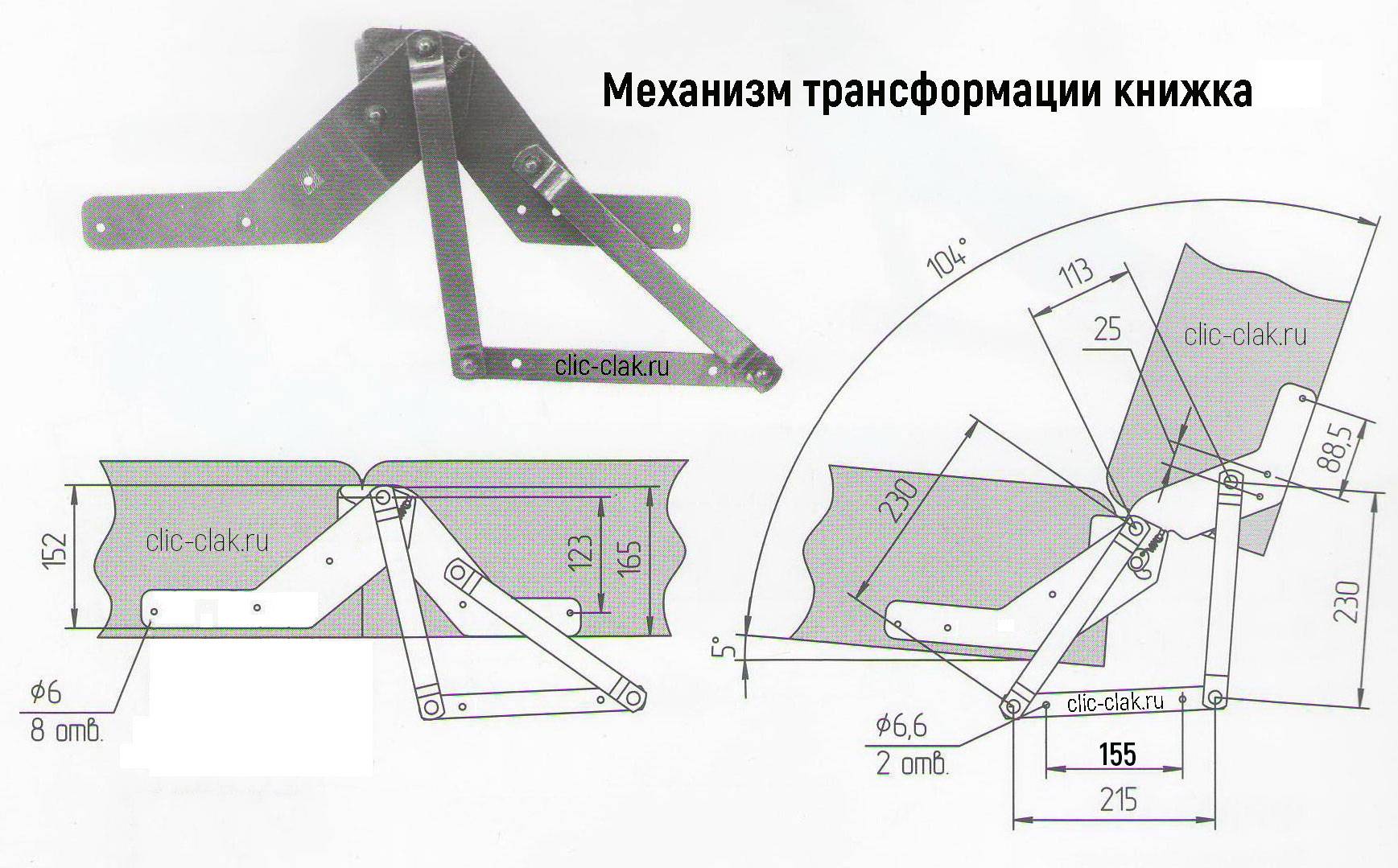 Схема механизма трансформации дивана “Клик-кляк”