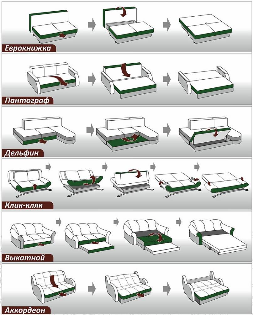 Виды механизмов дивана