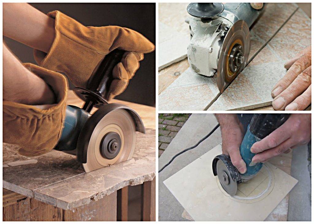 Болгарку используют при вырезке углов на плитке. Для резки плитки болгаркой применяется алмазный круг.