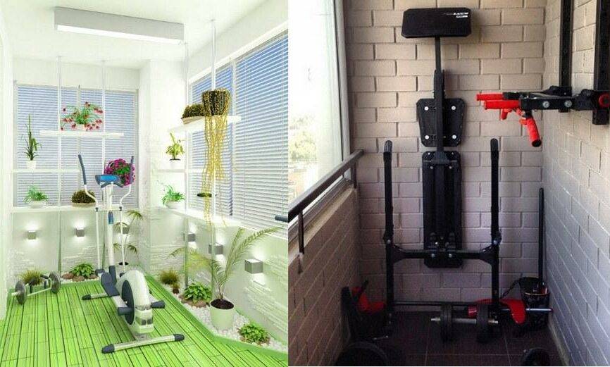 Просторный балкон можно превратить в спортивный зал. Этот тип обустройства относится к новым направлением и больше подходит для малогабаритных квартир.