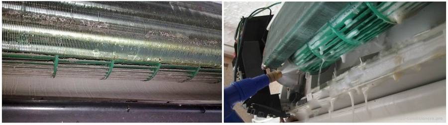 Глубокая очистка теплообменника проводится только сотрудниками специальной клининговой службы со снятием внутреннего блока. В домашних условиях его можно обработать только поверхностно. Поэтому не стоит засорять кондиционер, нужно чистить его своевременно, чтобы избежать больших финансовых трат. Процесс очистки: