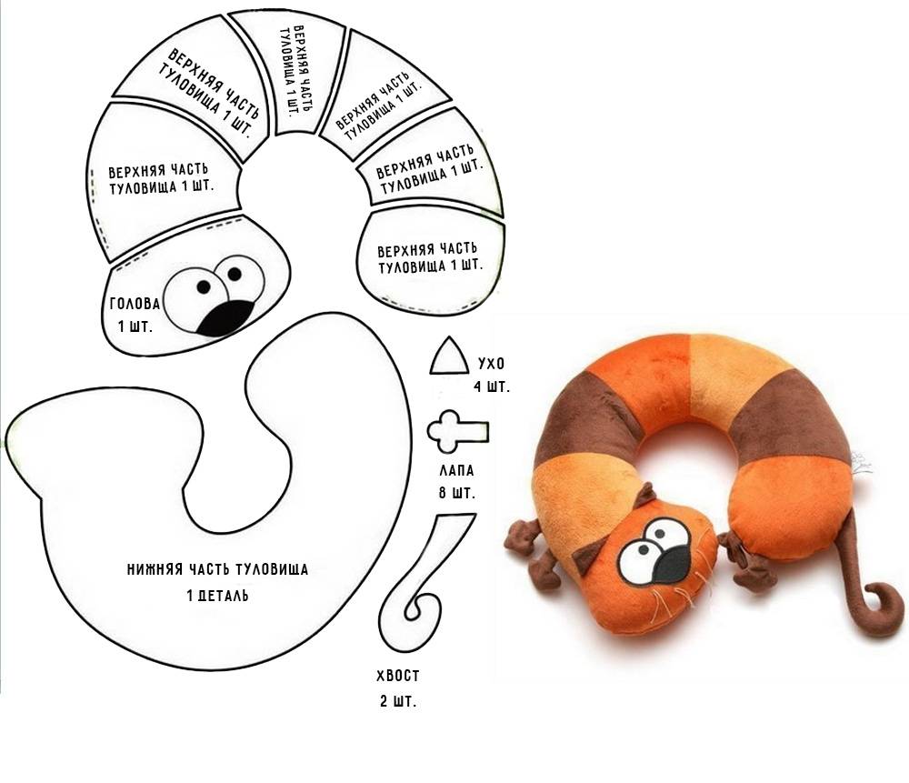 Выполняются они также как фигурные подушки: создается выкройка на бумаге, раскраивается ткань и сшивается изделие. Затем детали вшиваются в готовое изделие.