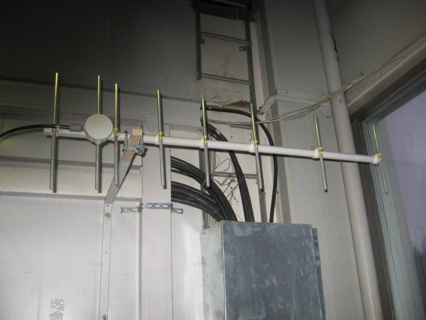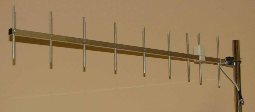 Принцип действия конструкции: в направлении источника сигнала располагаются две проводящие шины, на которых в строгой последовательности установлены перпендикулярные вибраторы. Их длина и расстояние между собой рассчитываются по строгому алгоритму. Ошибка в 2–5% приведет к полной неработоспособности системы. Зато правильно собранная антенна будет принимать аналоговый и цифровой сигнал с высочайшим качеством.