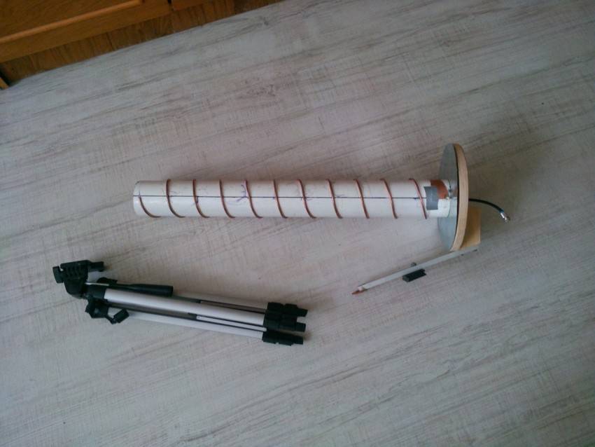 - Картонное или фанерное основание для фиксации антенны, изолента или другой клейкий материал.