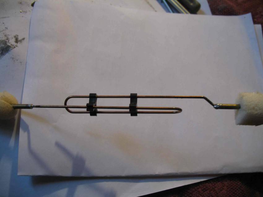 - Металлическая труба длиной на 6-7 см короче указанной в таблице. Материал — любой металл: латунь, сталь, дюралюминий и т.п. Диаметр — от 8 мм до 24 мм (чаще ставят 16 мм). Главное условие: оба «уса» должны быть одинаковыми: из одного материала, одной длинны, из трубы одного диаметра с одинаковой толщиной стенки.