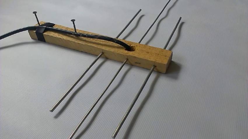 Вот и получилась антенна ДМВ, своими руками сделанная. Конструкция ее оказалась очень дешевой и практичной. А работает она не хуже, чем дорогие магазинные варианты. Ее нужно закрепить на фанере или оргстекле. Для этого отлично подойдут строительные хомуты.