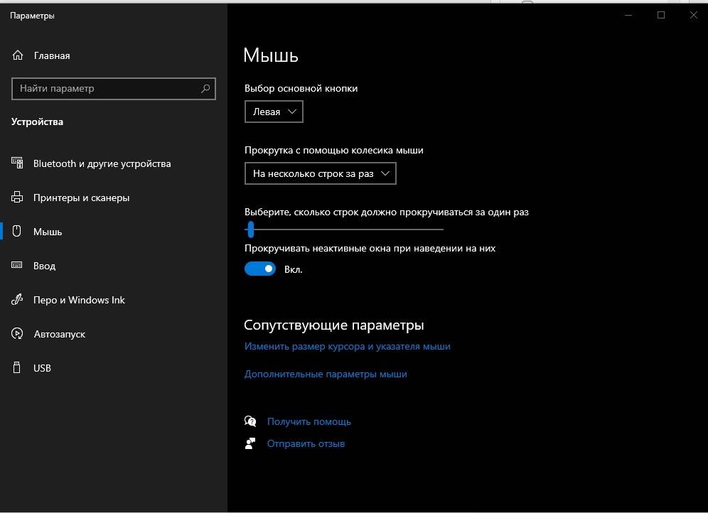 В появившемся списке найти раздел «Параметры мыши». Далее настройки выполняются в обычном режиме. Переместить ползунок можно несколько раз – установить значение и проверить реакцию устройства, чтобы убедиться в корректности работы устройства управления.