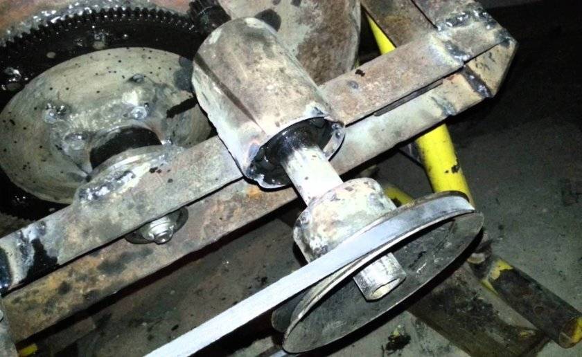 - Маховик от автомобильного двигателя, подойдет старый от любой легковушки.