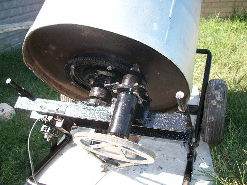Используя мотор с такими параметрами для производства агрегата, вы сможете добиться наиболее оптимальных результатов смешивания: раствор будет высококачественным, а сухих комков в нем не останется. Помимо этого, чтобы двигатель работал в нормальном режиме и не подводил вас в самый ответственный момент, вам понадобится установить редуктор, а также шкивы ременной передачи.