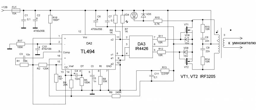 : — транзисторы – вместо КТ315, что на схеме, подойдут другие с аналогичной мощностью, КТ816Б являются взаимозаменяемыми с КТ646 с любой буквой; — стабилитроны – Д815 меняем на похожий со стабилизационным напряжением 15 В; варианты стабилитрона VD4 – КС512А, Д815Д; — готовые диодные мосты заменяем наборами из отдельных диодов; следим за тем, чтобы напряжение диодов составляло 400 В, а ток – минимум 0,5 А.
