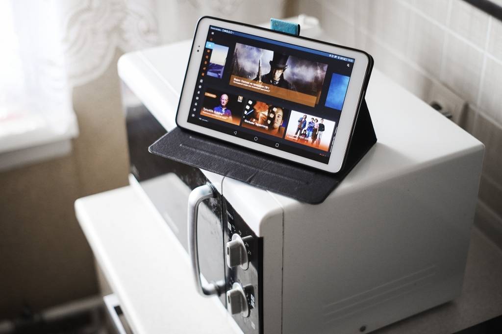 Кухонный телевизор из старого планшета сделать проще простого — достаточно купить подставку или даже прикрепить к стене на двухсторонний скотч. Для просмотра телевизионных каналов потребуется роутер и широкополосный интернет. Для трансляции подойдет любое приложение для просмотра онлайн. Например, для абонентов «Ростелекома» достаточно установить Wink.