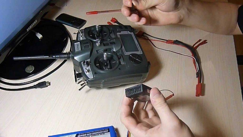 Передатчик на управляющую плату стоит подбирать по карману. Главное, чтобы было не менее четырёх каналов и частота 2,4 ГГц. Его можно купить для левши или правши.