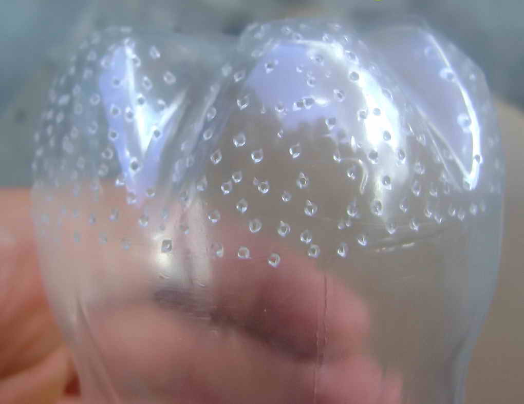Для этого в стенке бутыли проделываем три ряда небольших отверстий. Расстояние между рядами 2,5-3 см, диаметр отверстий около 1 мм. Количество отверстий в ряду отрегулируйте опытным путем.