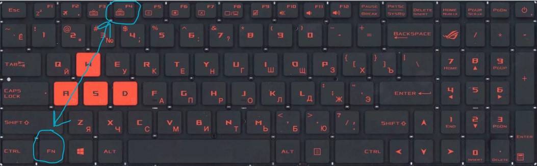 Если этот вариант не помог, следует поискать кнопку с фонариком и одновременно нажать ее с помощью Fn или F4. Отключите такую же комбинацию.