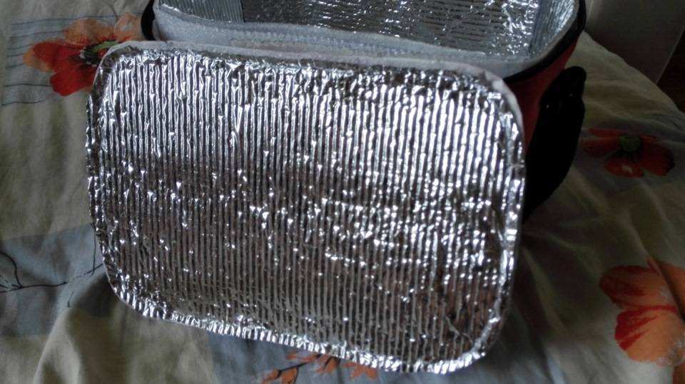 Стоит обратить внимание на то, что в некоторых мастер-классах советуют вкладывать под вспененный полиэтилен хладагент, подключенный к аккумулятору, для того, чтобы не только сдерживать прохладу внутри сумки, но и охлаждать продукты