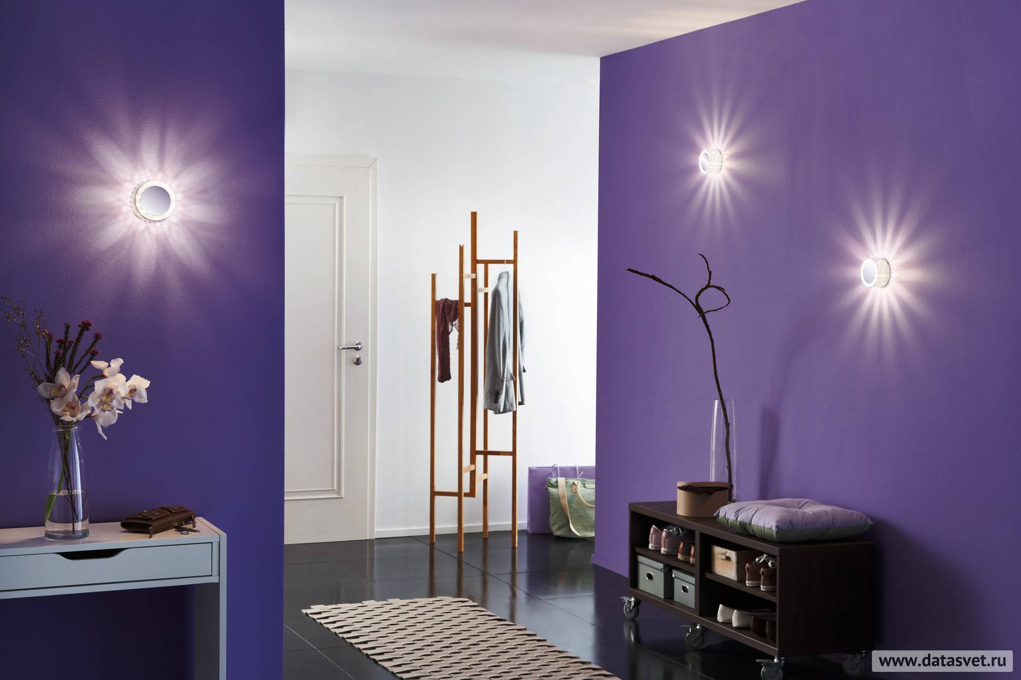 - светодиодную подсветку, которая размещается в зоне прихожей, под кровлей.