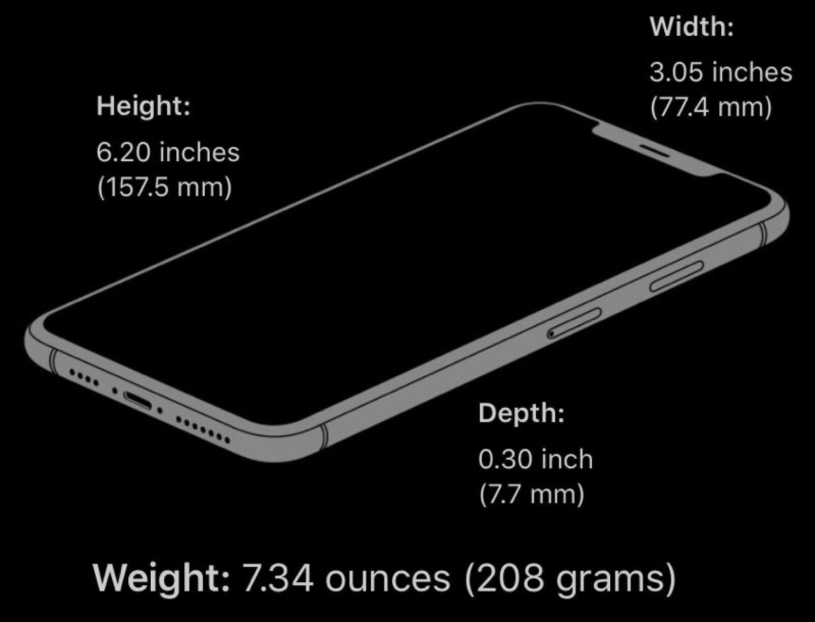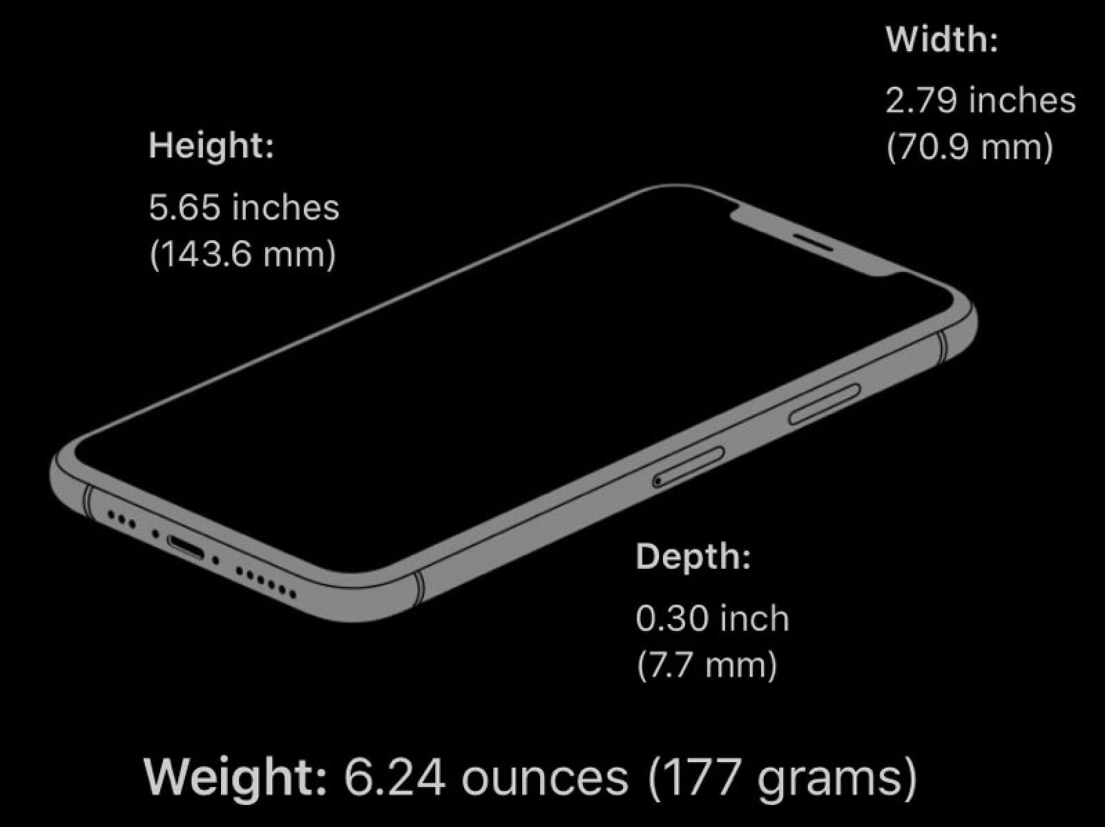 Размеры iPhone XS