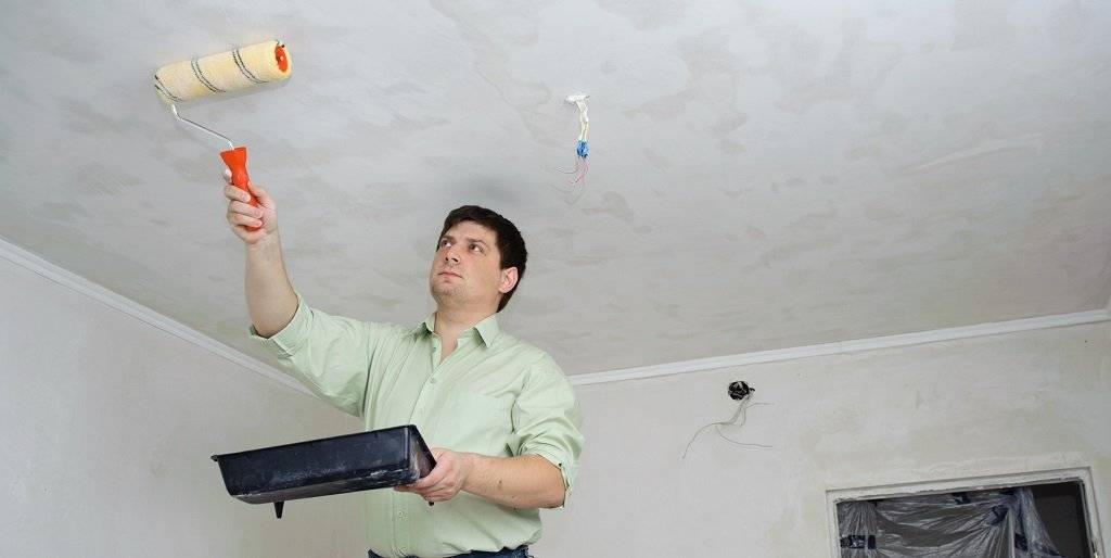Удалив основную краску, потолок промывают вручную намоченной тряпкой или губкой до исчезновения белесых следов.