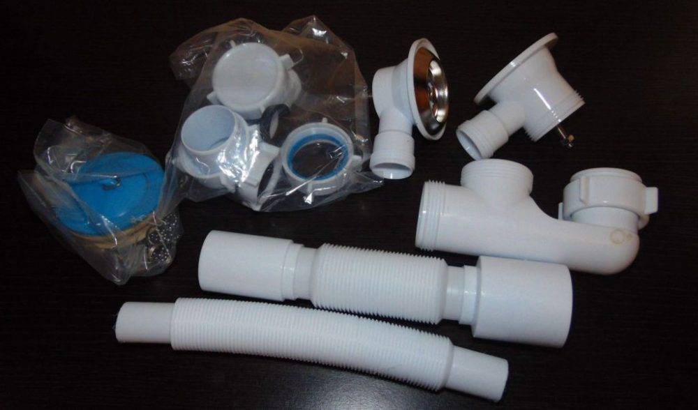 Пластиковые элементы сифона для ванны закручиваются вручную