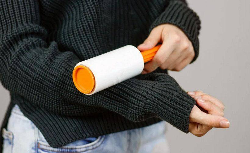 - Для быстрого приведения своей одежды в порядок и устранения шерстинок, рекомендуется иметь в прихожей липкий ролик. С его помощью можно пройтись по вещам перед выходом.