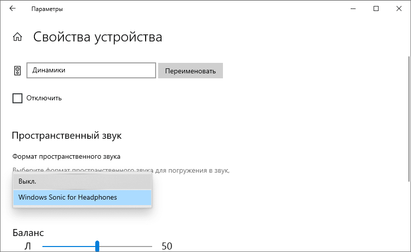 - В списке «Формат пространственного…» выберите «Выкл.», окно не закрывайте.