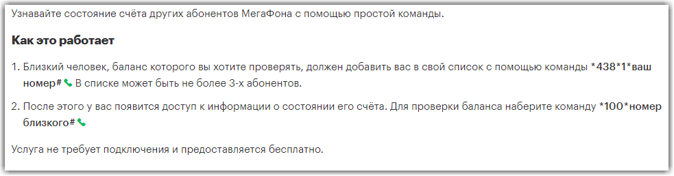 - Чтобы узнавать состояние Лицевых счетов других абонентов «МегаФона» (родственников или друзей), подключите .